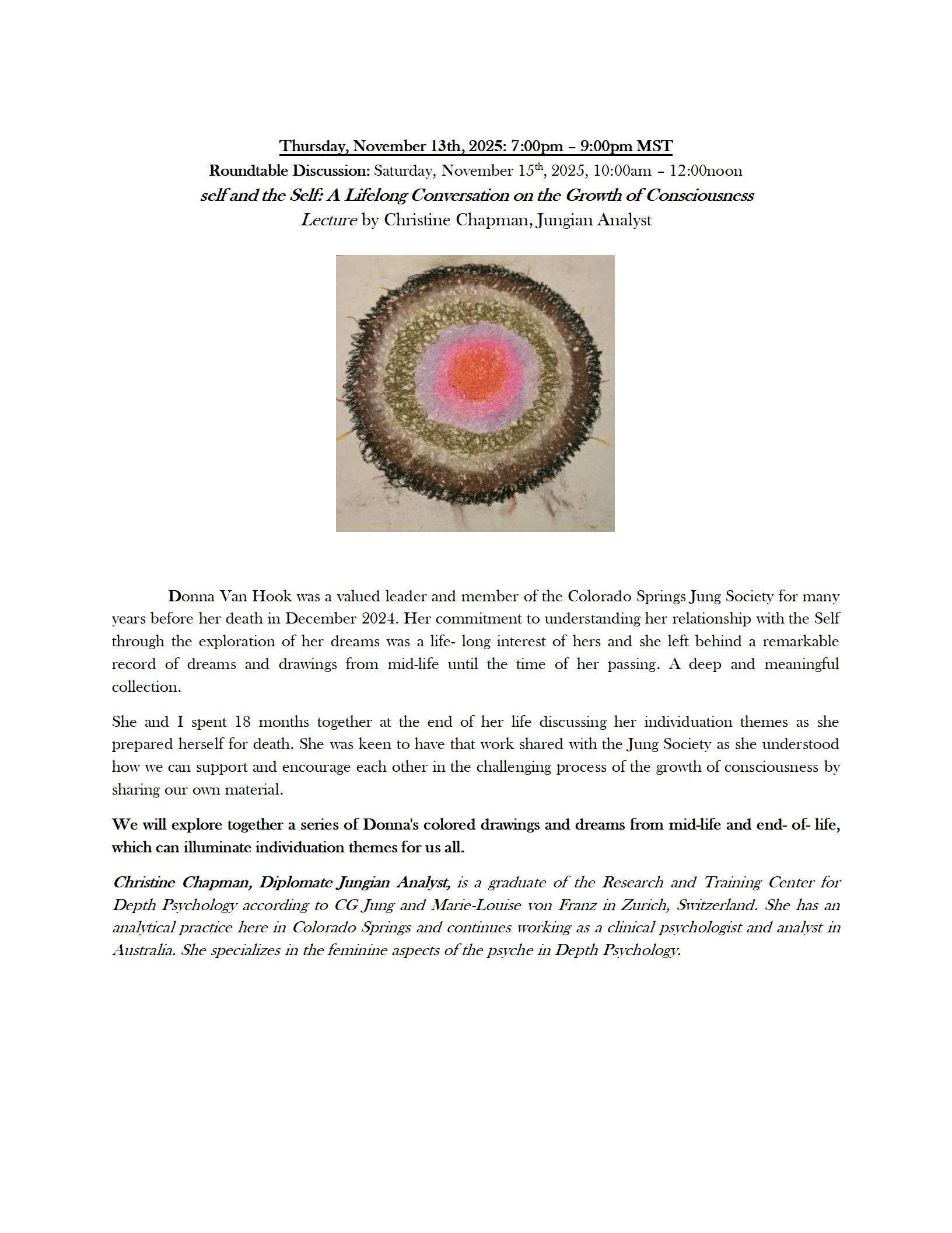 Greetings from the Board as we continue 2025! We wish you all a good year, even as the coming months will present grave challenges to our collective and individual psyches. Jung’s prescient essay, “The Undiscovered Self,” is well worth re-reading and pondering at this moment in time as we deal with the powerful collective forces here and around the world. His prescription in the face of pervasive collective influences is to find and maintain one’s own individual standpoint and relationship to the Self.
